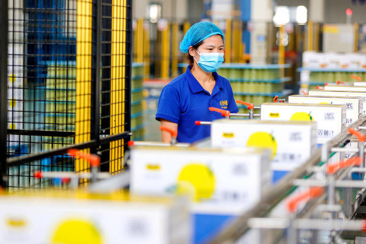 糜作文也曾在水果出口上“栽过跟头”,去年有一批出口的柑橘外观很好,但内部水分不足,既降低了公司效益,还可能影响商业信誉。“以前靠人力、靠经验选果,10多个工人一天只能处理3000斤水果,如今数字化产线处理效率翻了10倍,还能‘透过果皮’看品质,满足大大小小百余项检测指标需求,确保出口果品优良。”