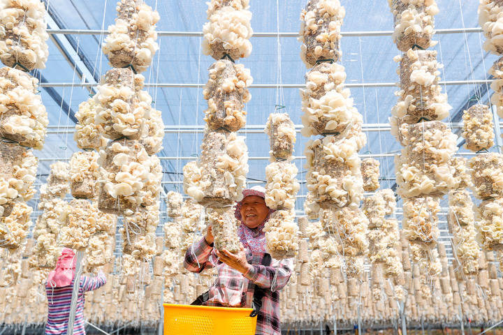 2025年5月21日,在江西省吉安市峡江县林木良种场种植基地,村民在采摘玉木耳。陈福平 摄在一次次“问诊”和授课中,专家做给农户看,农户跟着专家干,田间地头的种植标准越来越规范。如今,公司的现代化育苗基地里,下方种着中药材幼苗,上侧垂挂着7万多个木耳菌包,实现一田两收、立体种植。邓智平说,基地已有6位村民,跟着专家边看边学逐渐成为行家,木耳亩产最高能达到1.2万斤。